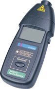 Simply aim the laser beam at a reflective mark placed on a rotating device, push the button and the RPM reading is immediately displayed. No contact with the shaft or wheel is necessary. Specs: Display 5 digits large LCD; Range: 2.5 - 99,999 RPM; Distance:up to 40 inches; Resolution:0-1000 RPM/0.1RPM; 1,000-9,999 RPM/2.5 RPM; >10,000 RPM (±0.025%+1dgt). Measurement angle:at less than 120 degrees; Range selection: Auto; Laser Output Power:<1mW class II; Sampling Time: 1.0 seconds (over 60 RPM); Memory: Last value, Max Value, Min. Value; Time base: Quartz crystal; Circuit: Exclusive one-chip LSI circuit; Battery: 4 X 1.5V AA (Not included); Case, reflection tape and manual book are included.Digital Laser Tachometer for non contact RPM measurement of machines DT2234C Features